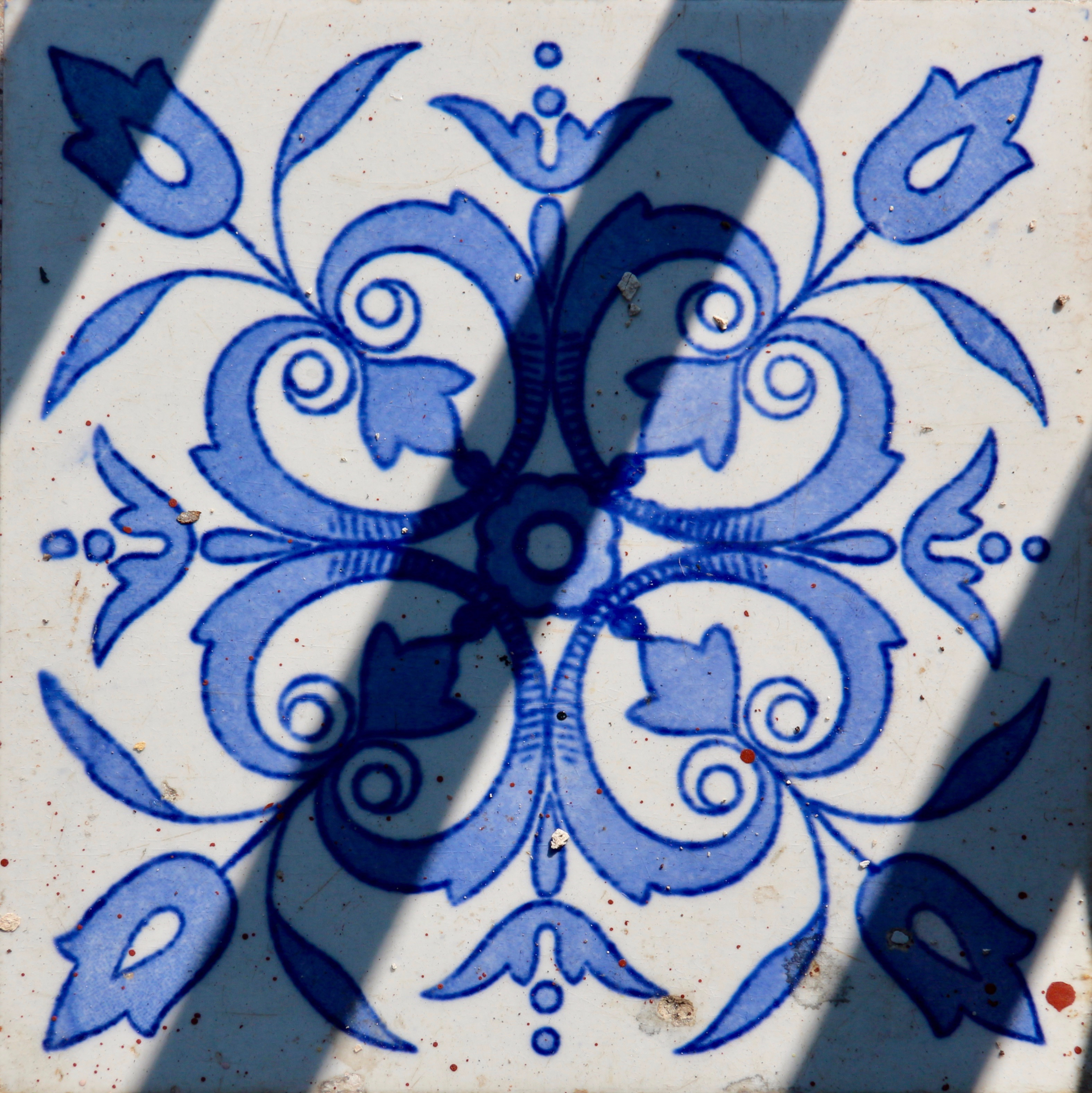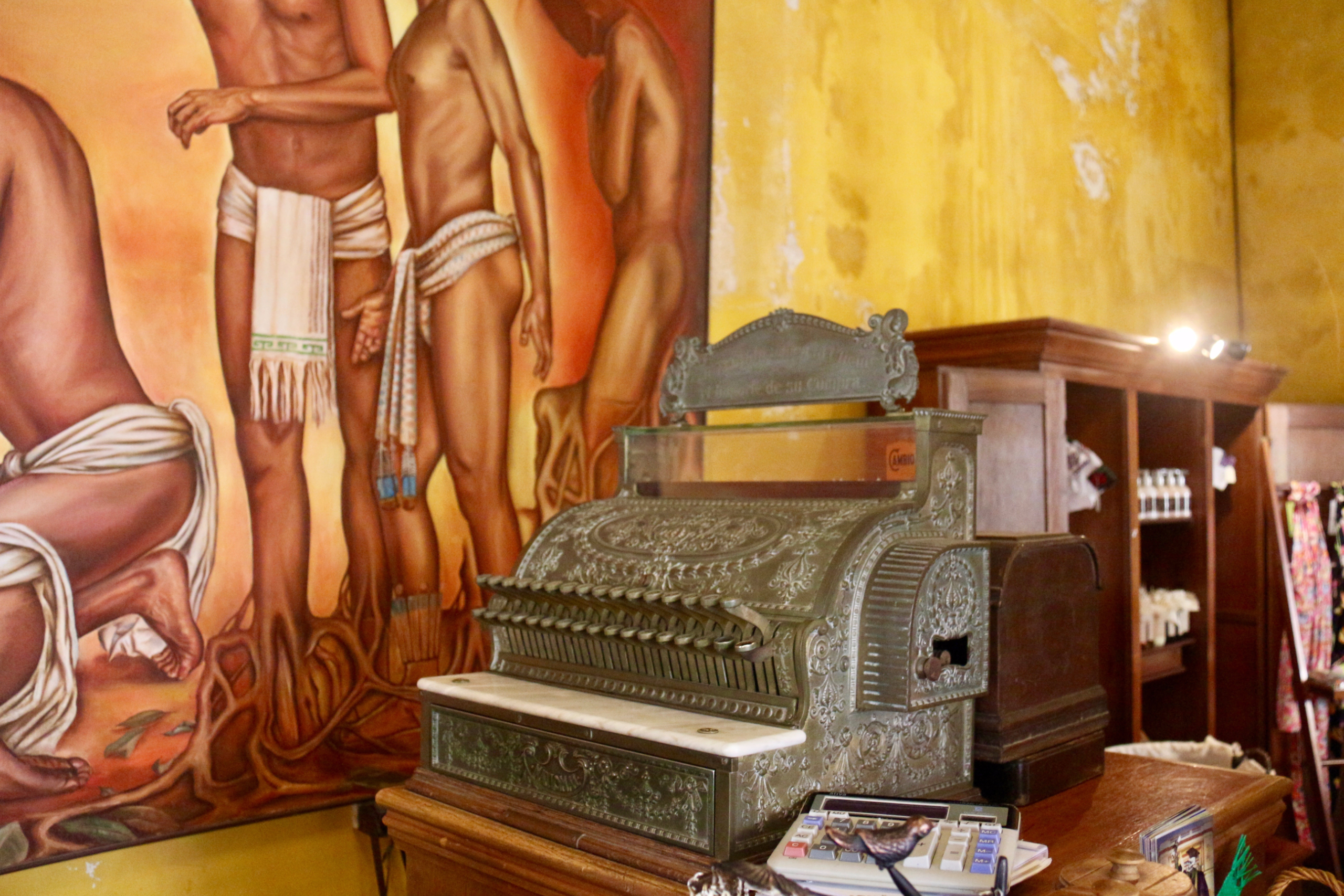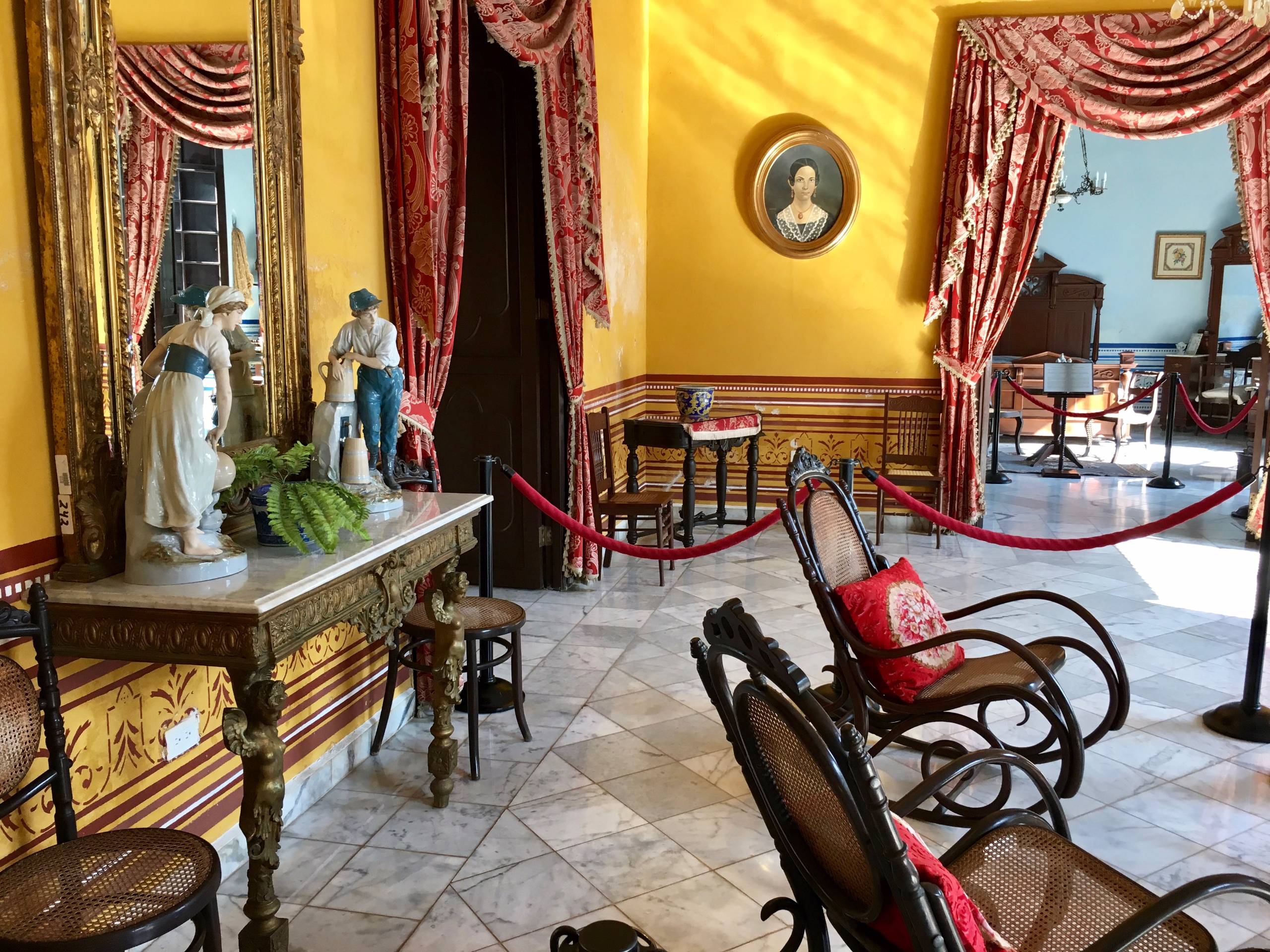Кусок оригинальной стены. Суть суть в том, что в Мексике очень любили рисунок европейских обоев и старались не отставать от моды, НО везти бумажные обои через океан было довольно накладно и не было гарантии, что столь недолговечный товар вообще доедет в нужной кондиции. Поэтому привозились только образцы обоев, а стены красили под рисунок обоев.